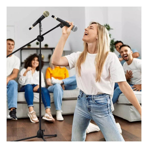 Pedestal Para Microfono Base Doble Boom Atril Profesional Negro